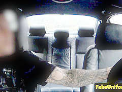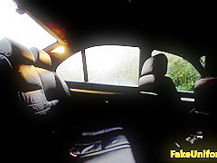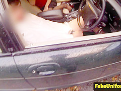 Police dude anal fingers blond bitch in car in advance of fucking her cum-hole