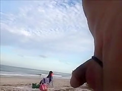 Slutty dad makes water and jerks off his weenie on a dark hottie at the beach