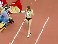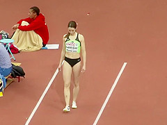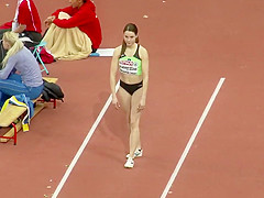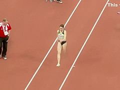 Camera at the stadium caught a stunningly nice-looking jumper as this babe was trying to break the world record in lengthy jump in a indeed taut and short sweatpants.