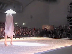 Instead of putting the focus on the latest work of a noted fashion designer, a smokin' sexy looker unveiled merry love bubbles and a yummy piece of fur pie at a fashion show.