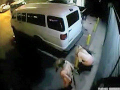 They scampered off the street and into this parking lot where a security camera captures footage of 'em pissing on the concrete. Puddles of urine are all that’s left when they walk away.