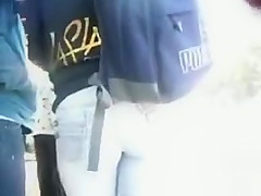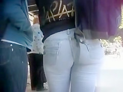 Just standing there in front of me in a couple of pale blue jeans that accentuated each little curve of her big butt cheeks, a girl simply begged to be taped from behind.