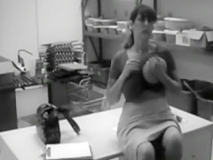 Office woman with biggest wobblers masturbates at work