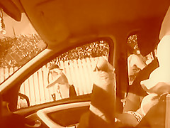 Babes watch his hard schlong in the car