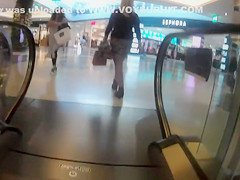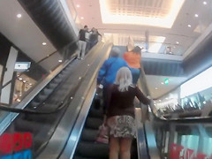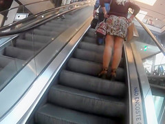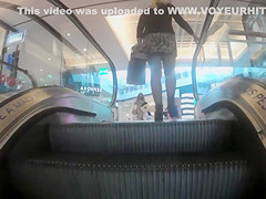 I discovered a curvaceous lady going up the escalator in a short petticoat, so I started recording, and to my luck, that babe bent over at a certain point, revealing her pants.