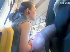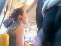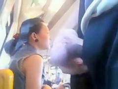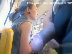 Man wanks off on a breathtaking Oriental lady whilst riding a bus