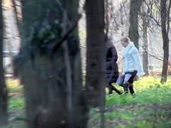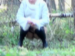 One hotty truly needed to pee and since there was no ladies room in sight, that babe decided to take her to the woods where a sneaky peeper was expecting with his camera willing.