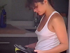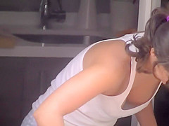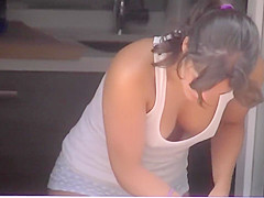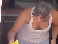 My smokin' sexy neighbour shows off her cleavage whilst cleaning