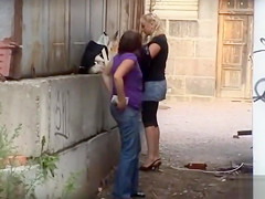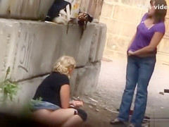 They get to not be near a public throne room cuz those 2 girls simply drop their panties and take a make water in the alley. They wipe with napkins and zip up in advance of heading out.
