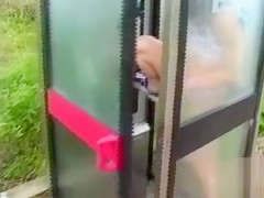 She’s in the payphone cabin and hidden a little from passing traffic as this babe plays with her British muff and love muffins. This Babe piddles on the ground by pulling her pants aside and letting loose.