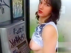 British beauty pissing and masturbating at a payphone