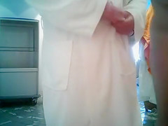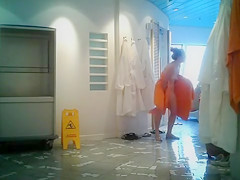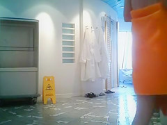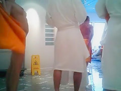Dudes and babes alike are caught in the spycam at the spa, including some ladies in close up as they step right in front of the camera to grab a towel or bathrobe.