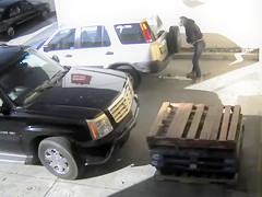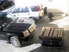 Fat woman takes a giant poop behind a parked car