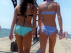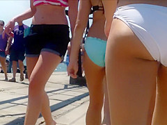 Since they were wearing bikinis that absolutely undressed all of the curves of their butt cheeks, a voyeur followed around a group of hawt hotties walking down the beach.