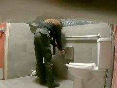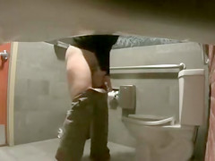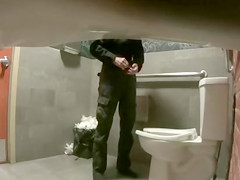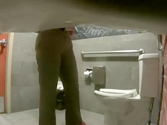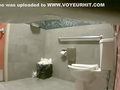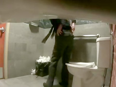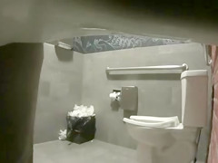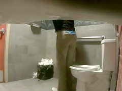 Tucked in the corner of the restroom is a hidden camera that films ladies going pee. 2 girls come throughout in the short scene and the one and the other have large booties that squat as they piss.
