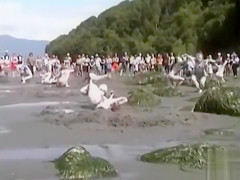 Description: Greater Amount than a dozen naked art performers are on the beach in white body paint and putting on a show for the audience. There are numerous constricted bodies to have a fun.