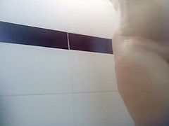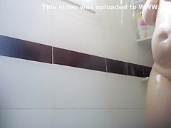 Sexual damsel had no idea that there was a hidden camera in the baths when this babe bare down, revealing her huge hooters and her juicy pubis, and washing her fat body.