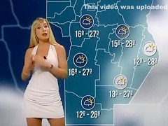 During The Time That that babe was talking about the upcoming weather conditions, the alluring mistress wore a short white suit that disclosed her big bazookas and lengthy legs.
