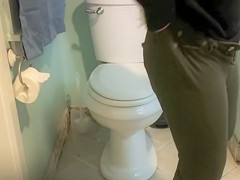 Hawt sweetheart takes a whiz in the crap-house and wipes herself