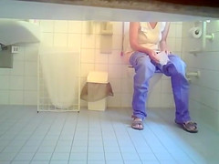 Description: Just how flawless the hiding spot in a certain restroom is can be seen from a footage of a sexual tart dropping down her panties and peeing in the crapper.