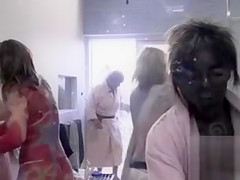 Ladies overspread in artistic body paint all end up in the shower trying to clean it off. They’ve finished their days work and now they look all juicy and hawt getting clean.