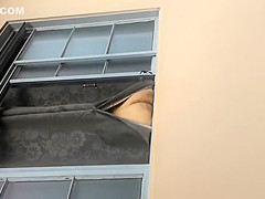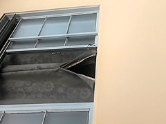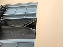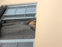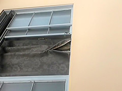 Knowing very well that there is a camera outside recording his window, a wicked studhorse pushed his round and hirsute arse throughout the crack in the curtains.