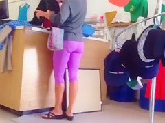 Wearing constricted panties that showed off curves of her large a-hole, as well as her trousers, a sexual bimbo had no idea that there was a voyeur following her around and filming her.