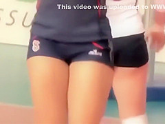 Nice-Looking volleyball players show off their round asses