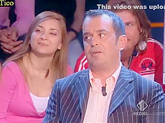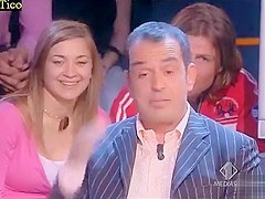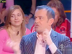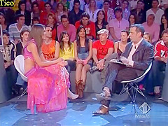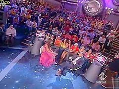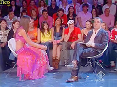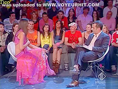 Skimpy costume cleavage tease on TV talk show