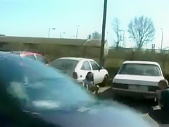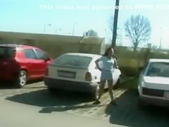 Despairing Hungarian hottie pees in public parking lot