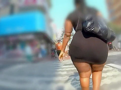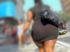 Ebon big beautiful woman with a giant arse walks down the street