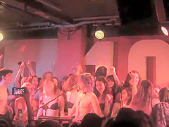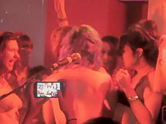 Following the lead of the main singer of the band, hawt bimbos got onto the stage with her and together removed their tops revealing all sorts of mambos to the audience.