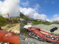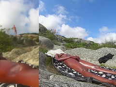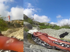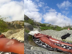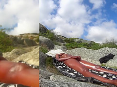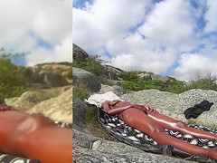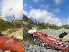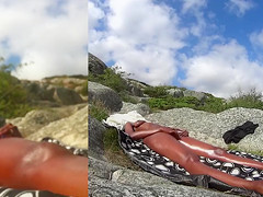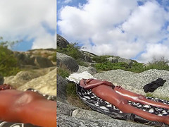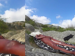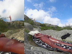 After that babe placed the camera on the ground, this succulent ebon playgirl started rubbing her clit during the time that expecting for naughty males to come and spy on her from the nearby hill.