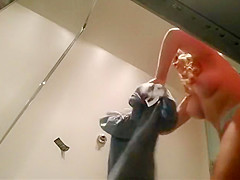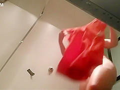 Entering a room with a well-hidden camera, a bewitching hottie nude out of her suit and disclosed her perfectly round jugs to it, as well as her hot pants.