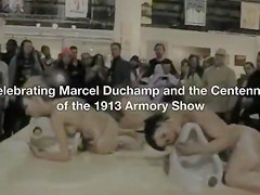 Sometimes, performance art is hard to understand, and this piece with 3 naked beauties of course qualifies. However, they’re all exposed and they look great so have a fun their public nudity.