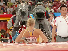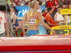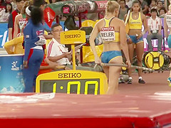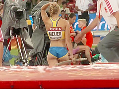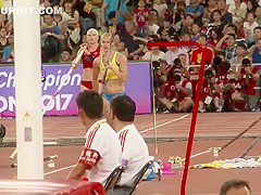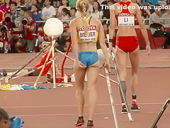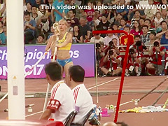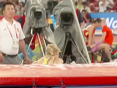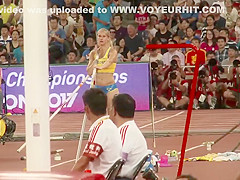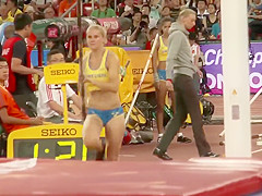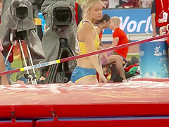 Competing in the championship for a medal, a cute blond hotty used a pole to jump indeed high and moved her butt cheeks sensually in the process.