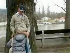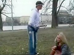 This Babe sucks his 10-Pounder, blowing him in the park and bending over for from behind sex. That Guy cums on her face and they leave it there for nasty movie scene.