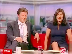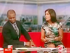 This delicious dark brown lady works for a morning chat show and each day that babe wears a costume or petticoat and always that babe gives an upskirt view when that babe crosses her legs. Come for the compilation.