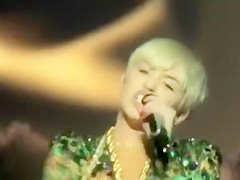 Pop cutie Miley Cyrus has a super constricted body with a great gazoo and she’s on stage singing in what is essentially a strap. Almost All of her butt is stripped to the screaming audience.