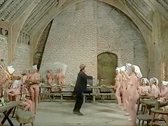 Bare ladies play music during the time that a group dances nude, bouncing around a gleeful gentleman. There’s a brief love scene in the stripped video movie scene as well.