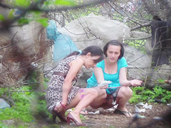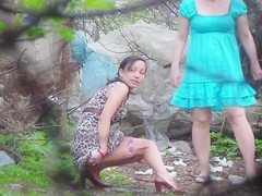 Beauties filmed peeing in the town park by sexually excited voyeur
