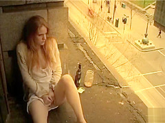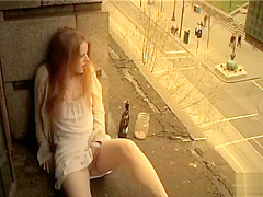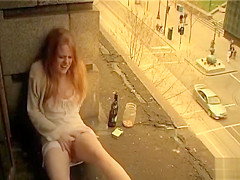 Ginger gal masturbates in public outside her apartment