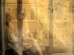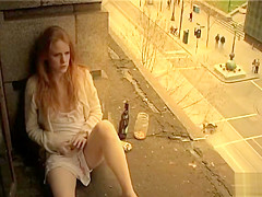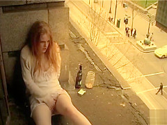 That Babe climbs onto the stone outside her window and sits with her legs open to masturbate as people and traffic pass by under her. Anyone smart sufficiently to look up would watch her cumming.