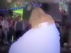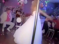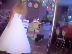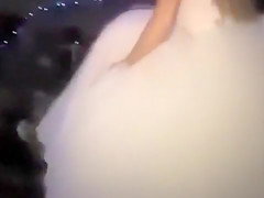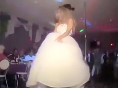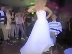 Foxy skinny blond performs a carnal striptease in a wedding costume