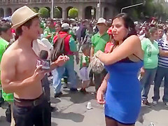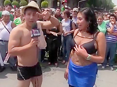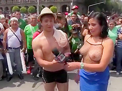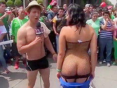 That Guy challenges the curvy model in the taut blue costume to undress in public and joins her. Her body is the glamorous one, with natural milk shakes and hawt haunches to admire.