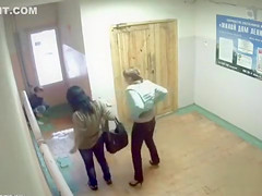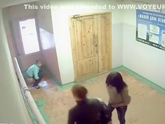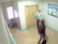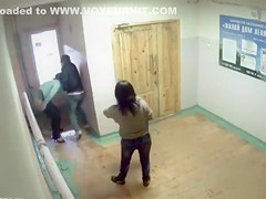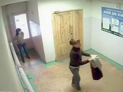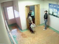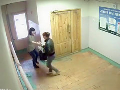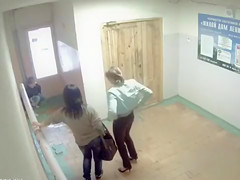 Peeing gals caught on security camera in the lobby