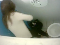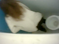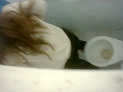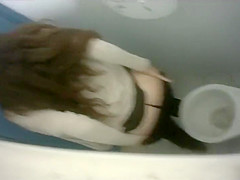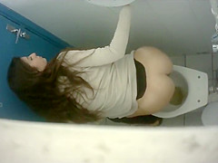 Lengthy-haired brunette hair with a bubble ass takes a quick pee in the college restroom