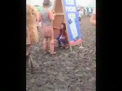 Hippie beauty peeing in the mud at concert