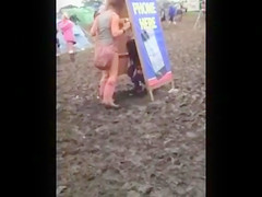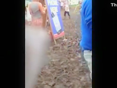 Description: There were probably lengthy lines for the toilets, which is why this party honey squats in the mud and voids urine in public. Anybody films it and now it’s online for your enjoyment.