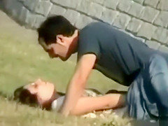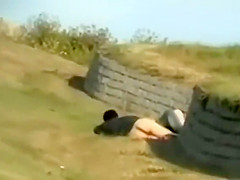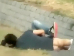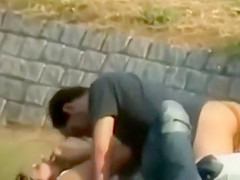 Juvenile German pair fucking in the grass for a lengthy time